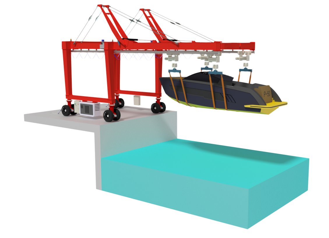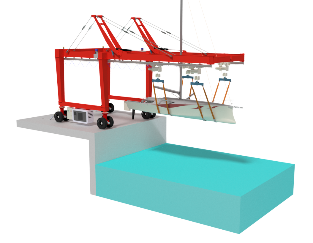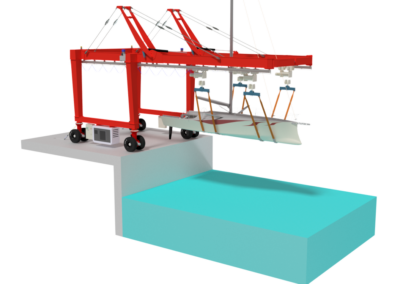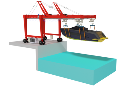 MANTIS-LIFT è una gru da banchina studiata per effettuare tutte le operazioni di un classico travel-lift, nei cantieri navali dove non siano presenti opere a mare per alaggio e varo.
